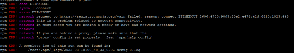 npm ERR! /root/.npm/_logs/2023-03-18T09_48_33_029Z-debug-0.log
